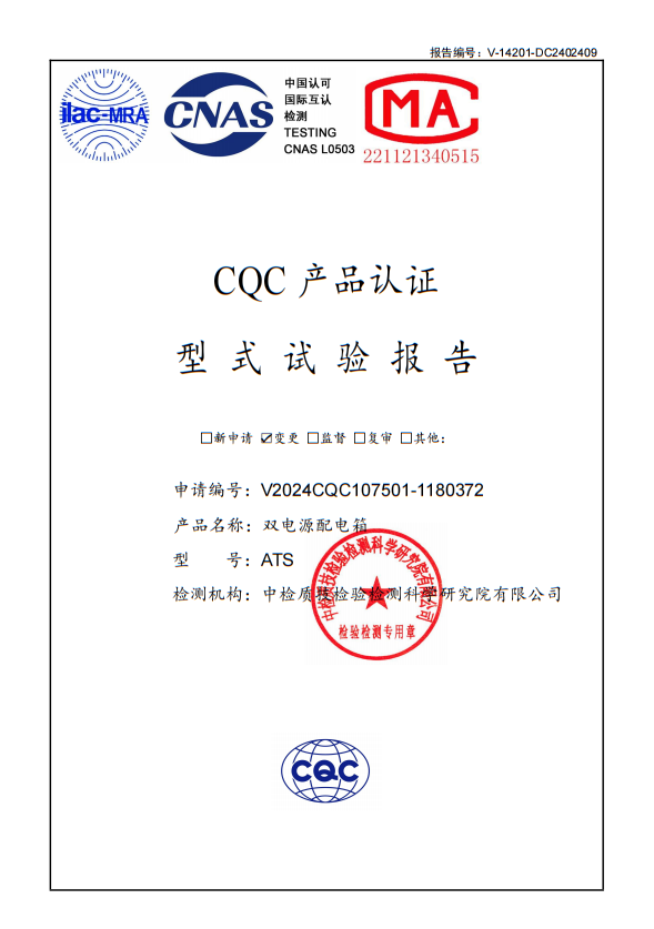 ATS雙電源配電箱試驗報