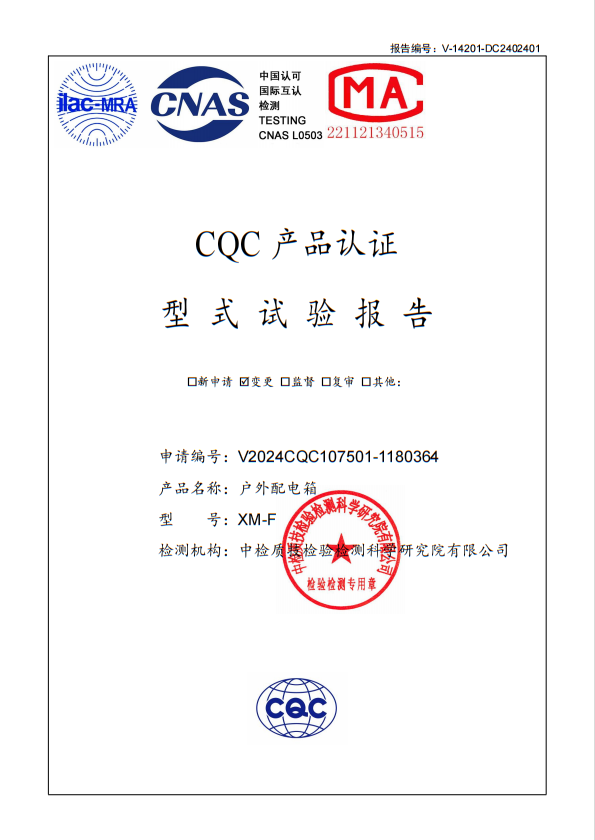XM-F戶外配電箱試驗報